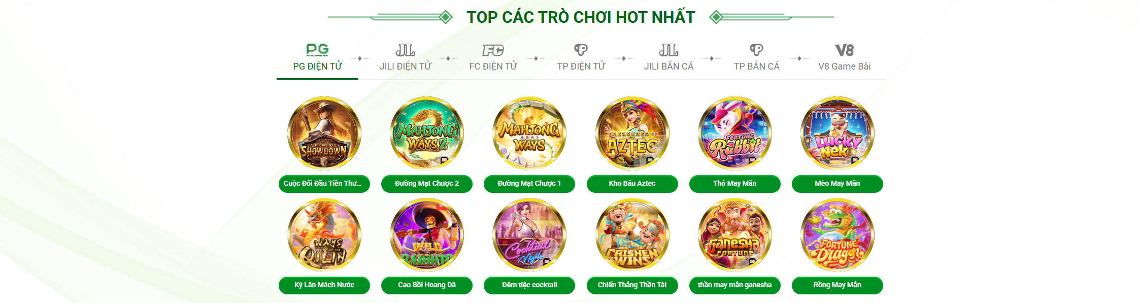 Chọn trò chơi yêu thích như cá cược thể thao, casino, slot game, bắn cá và bắt đầu trải nghiệm.