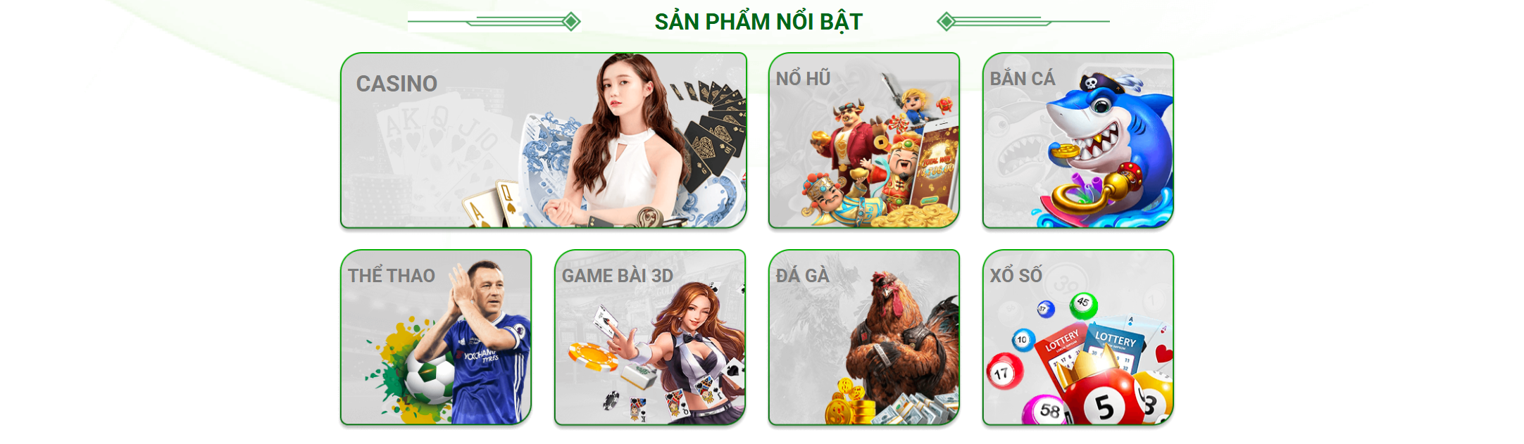 Bao gồm lô đề 3 miền, xổ số nhanh, Keno, cùng nhiều giải đấu eSports đình đám như Dota 2, Liên Minh Huyền Thoại, CS:GO.